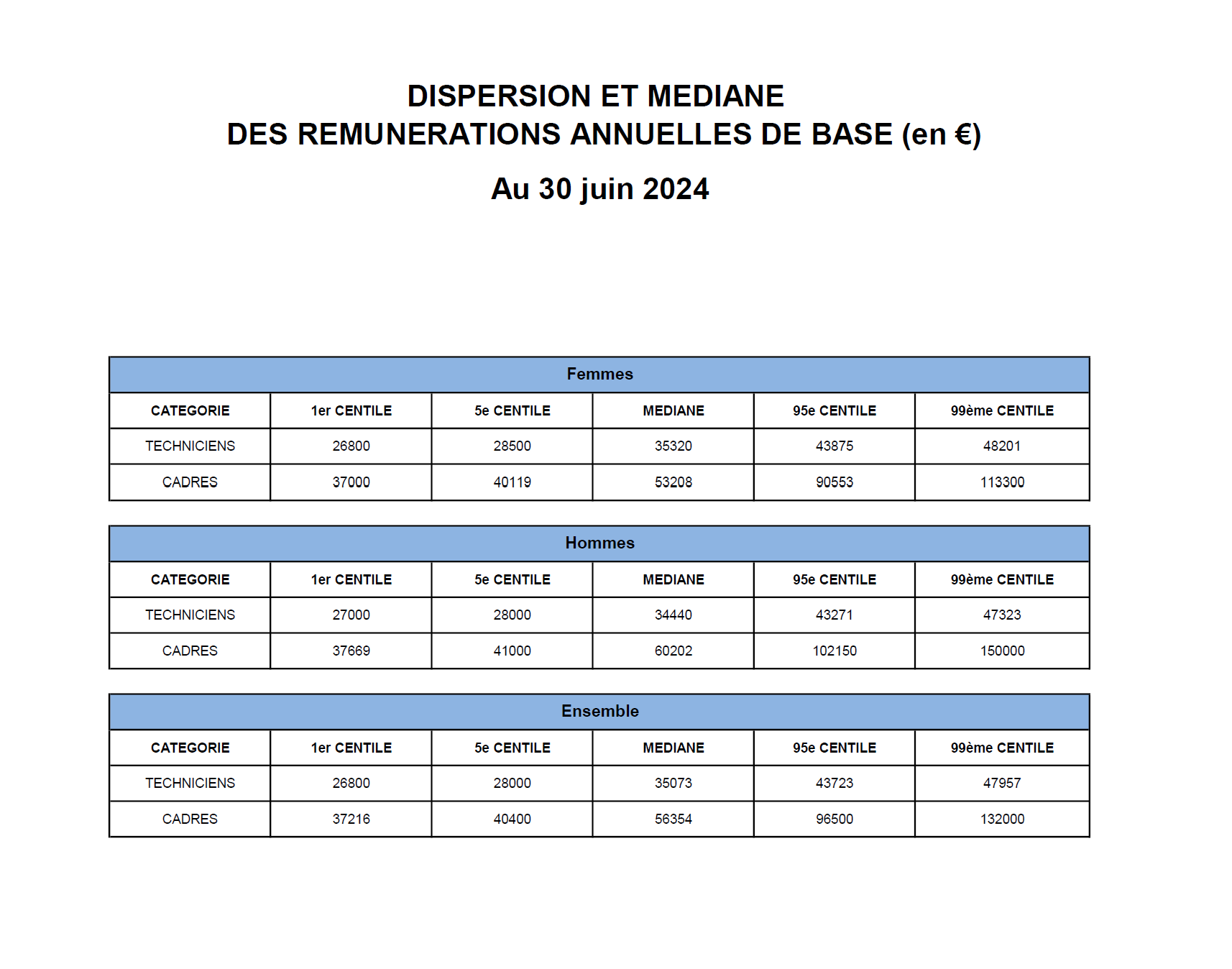 Médiane et dispersion des rémunérations par niveau de classification ;
